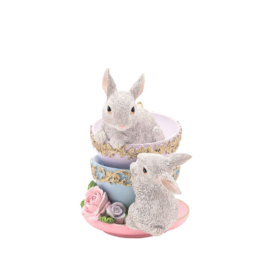 The Eggs-traordinary Easter Stacked Tea Cups & Rabbits Figurine