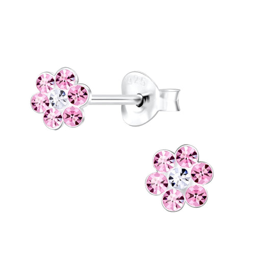 Kilkenny Silver Crystal Pink Flower Stud Earrings