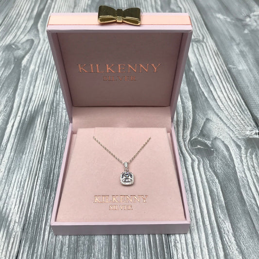 Kilkenny Silver CZ Square Diamante Necklace Silver