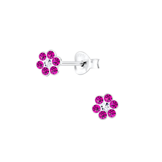 Kilkenny Silver Sterling Silver Pink Crystal Flower Stud Earrings