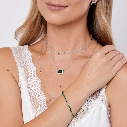 Knight & Day Danna Silver Emerald Tennis Bracelet