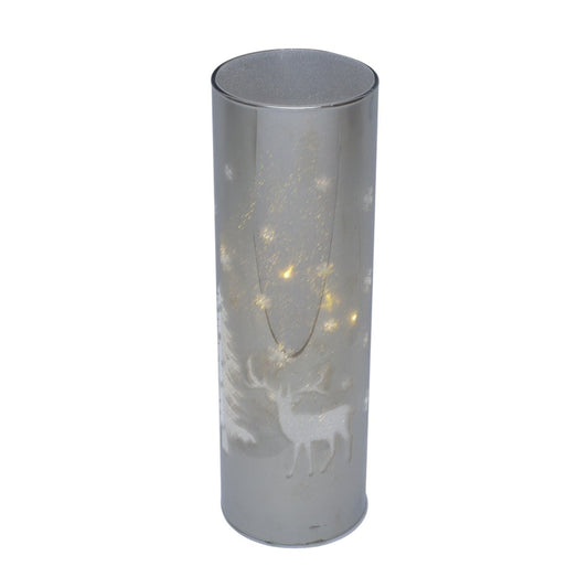 LED Silver Light Up Glass Tube with Reindeer Scene