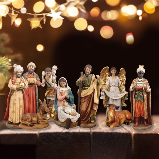 Nativity 11 Figures Set 4.5” with Gold Highlights