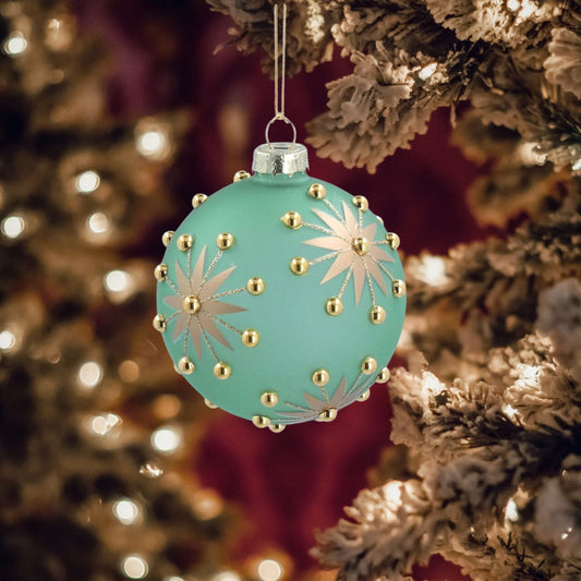 Opaque Green Glass Christmas Bauble With Gold Stars & Beads