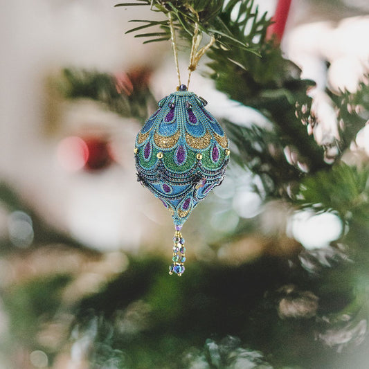 Peacock Colour Christmas Hanging Ornament - Finial