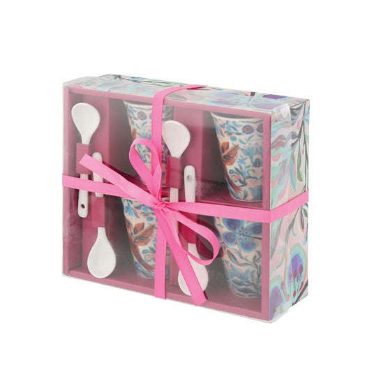 Allen Design Hummingbird Set of 4 Cups & Spoon Set