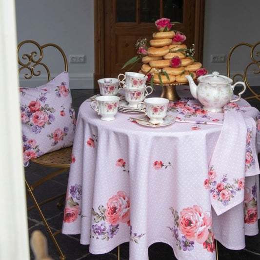 Romantic Roses Pink Cotton Tablecloth Square 150cm