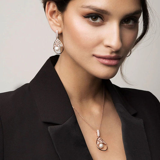 Rose Gold Ornate Swirl Pink Cz Pendant