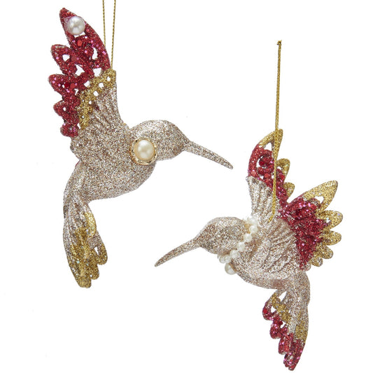 Ruby and Platinum Hummingbird Ornaments - Pearl Stud