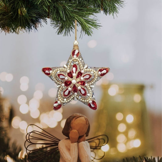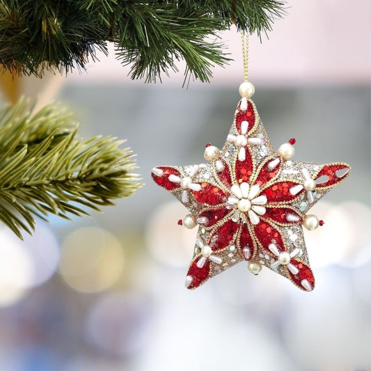 Ruby Platinum Christmas Star Hanging Ornament - Red