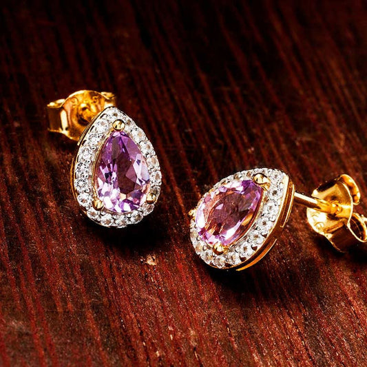 ShanOre 14kt Gold Vermeil Genuine Amethyst Halo Earrings