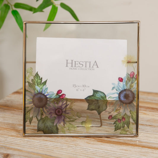 Silver Plated Floral Print Glass Photo Frame 6" x 4"