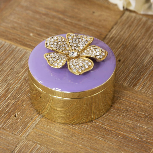 Sophia Trinket Box Lilac Lid With Crystal Flower