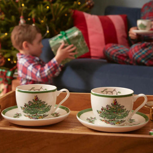 Spode Christmas Tree Set of 4 Teacups & Saucers