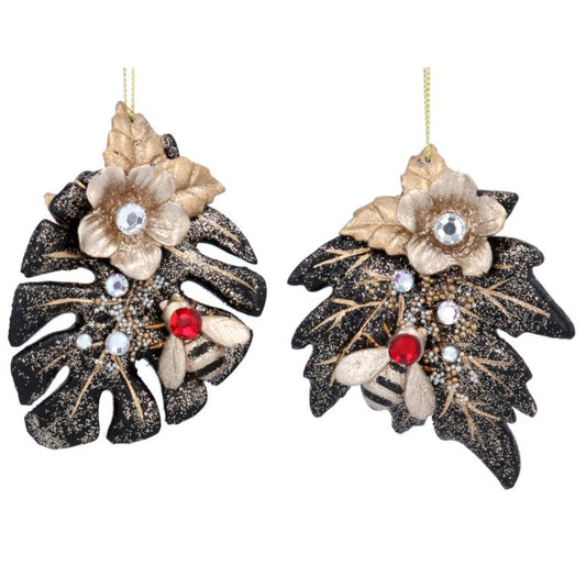 Christmas Decoration Black and Gold Leaf with Bee - Beech Leaf