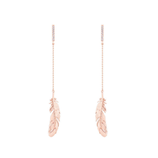 Tipperary Feather & Chain Long Earrings Rose Gold