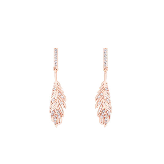 Tipperary Feather Simple Drop Earrings Rose Gold