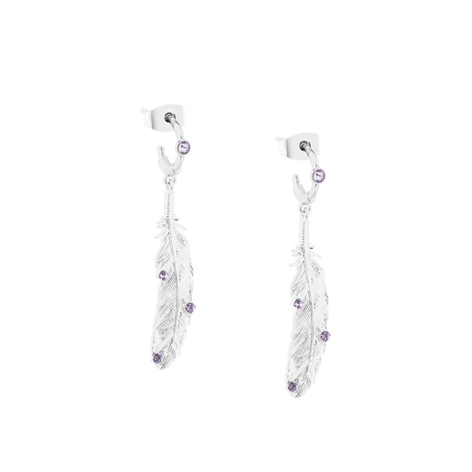 Tipperary Feather Drop Earrings Inset With Clear CZ