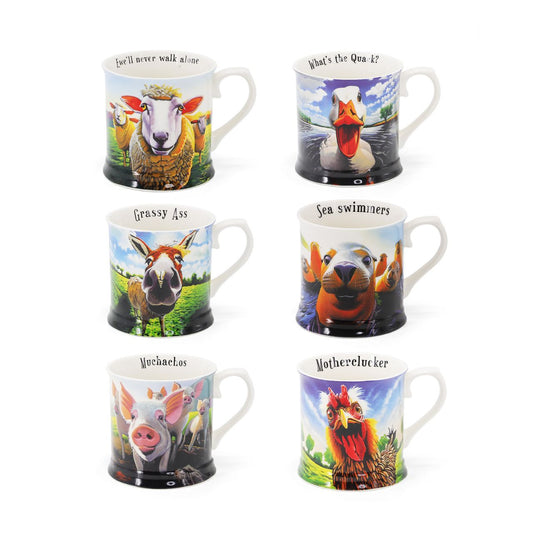 Eoin O'Connor Beyond the Herd Set 4 Tankards Duck, Owls, Hens, Donkey