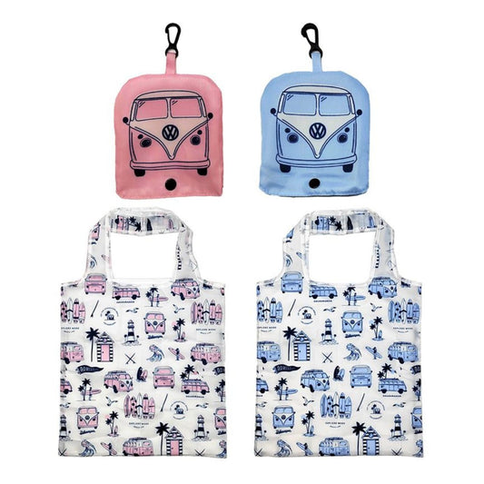 Foldable Reusable Shopping Bag Volkswagen VW T1 Camper Bus Explore More - Pink