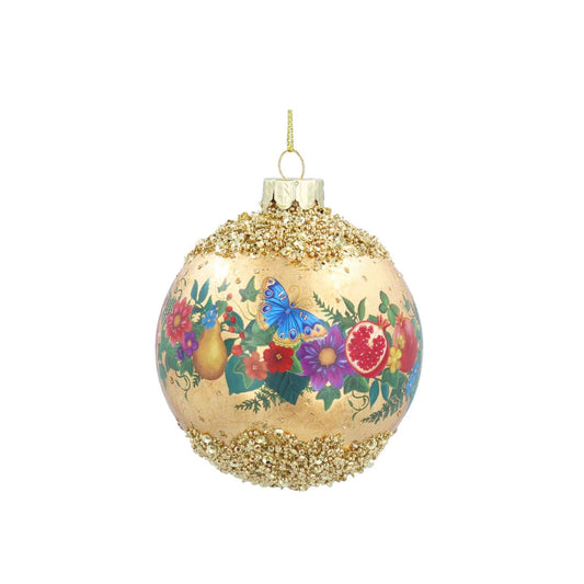 Gisela Graham Gold Leaf Beaded Fruit Band Christmas Bauble