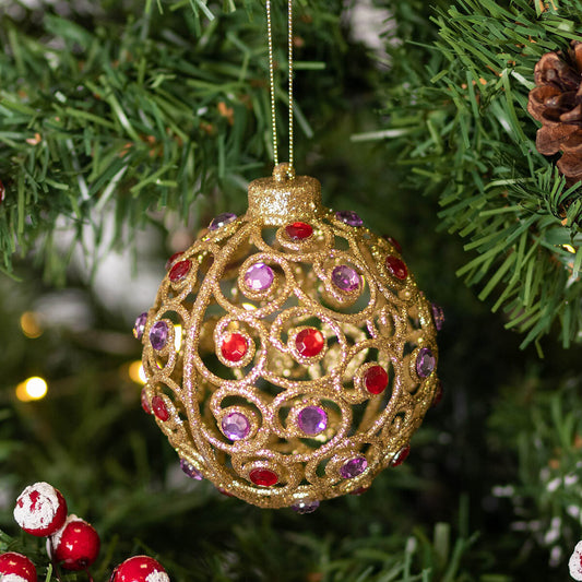 Gisela Graham Gold Filigree with Multicoloured Jewels Bauble