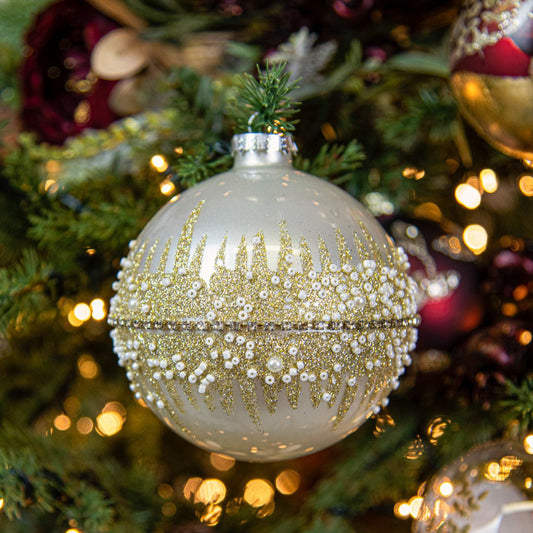Gisela Graham White With Gold Glitter Band Christmas Bauble