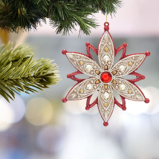 Ruby Platinum Christmas Star Hanging Ornament - Red