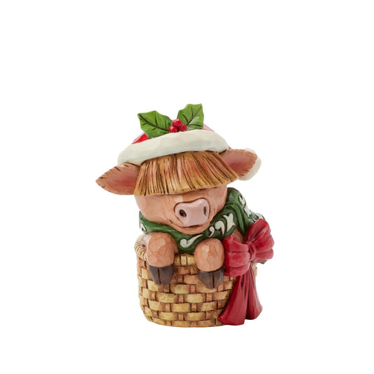 Jim Shore Highland Cow in Basket Mini Figurine