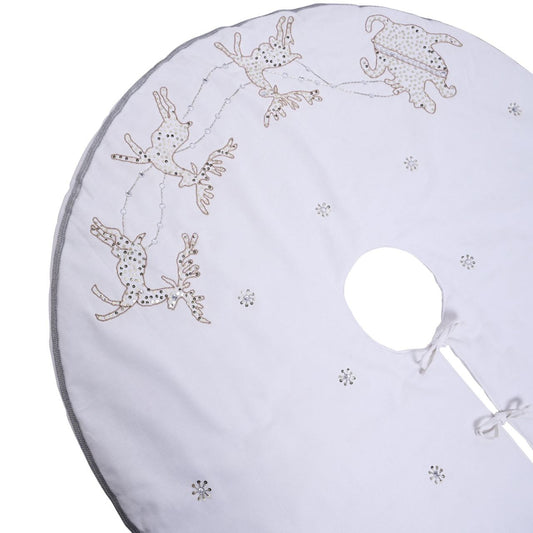White Reindeer Hand Embellished Christmas Tree Skirt