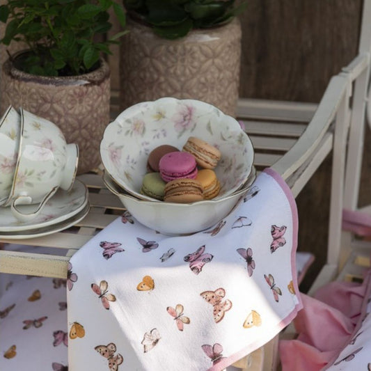 Country Style Beige Pink Cotton Table Runner Butterflies 140cm
