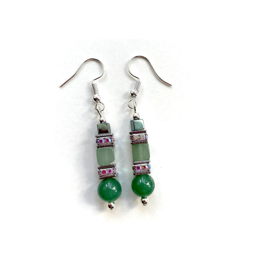Mishe Green Aventurine & Hematite Gemstone Earrings