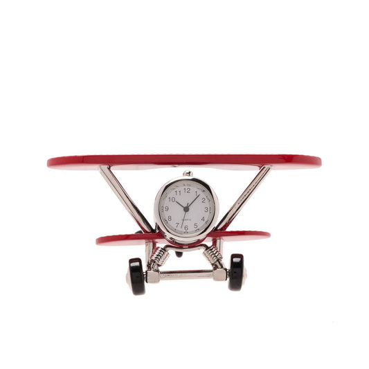 Miniature Clock Bi Plane Red & Black