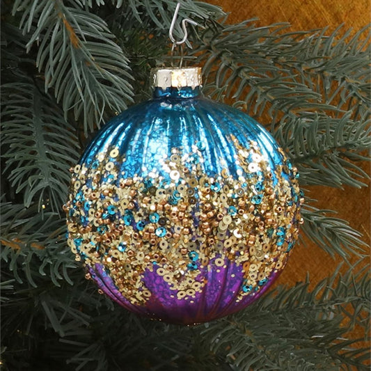 Christmas Baubles Purple & Turquoise Ribbed w Sparkle