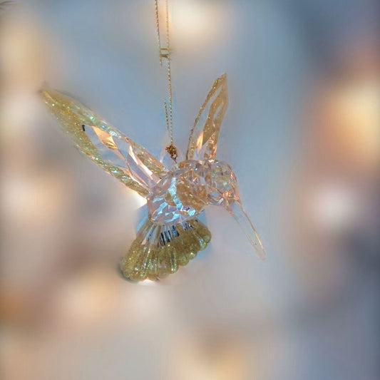 Christmas Clear Gold Glitter Hummingbird Hanging Ornament