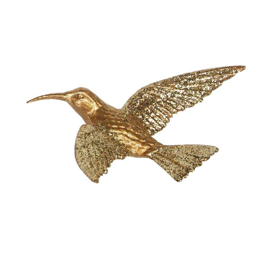 Green Gold Glitter Hummingbird Hanging Orn - Gold Wing