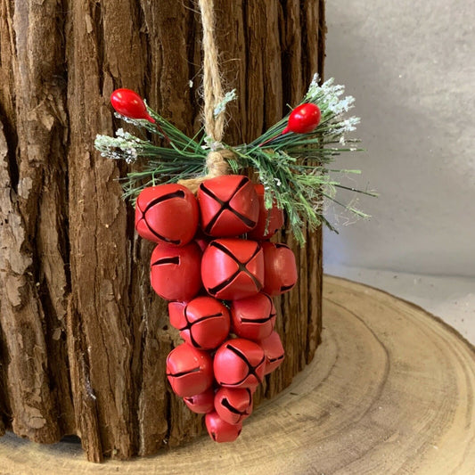 Christmas Decoration Matt Red Tin Jingle Bell Cluster