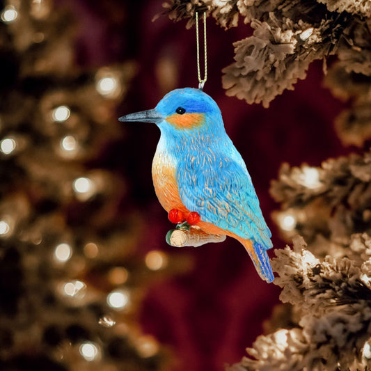 Robin in Log Ring w Berries Christmas Hanging Ornament