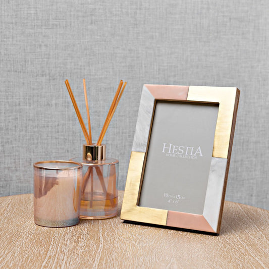 White, Grey & Pink Photo Frame with Brass Inlay 4" x 6"