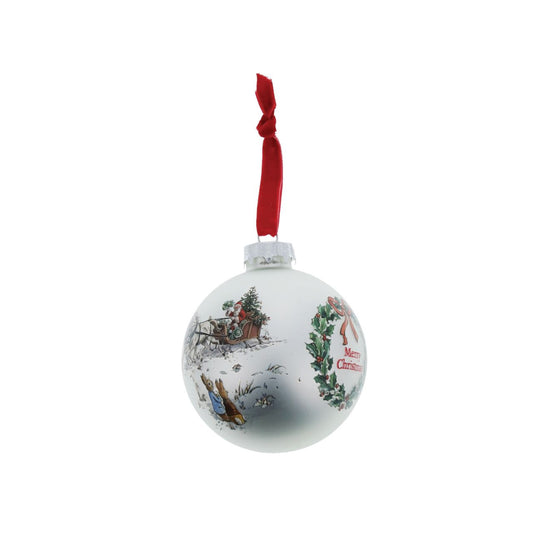 Peter Rabbit and Flopsy Holding Holly Wreath Bauble
