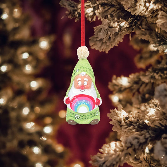 Christmas Snow Gnome Believe Hanging Ornament