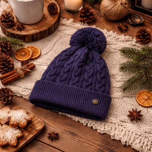 Man of Aran Navy Cable Bobbin Lined Beanie
