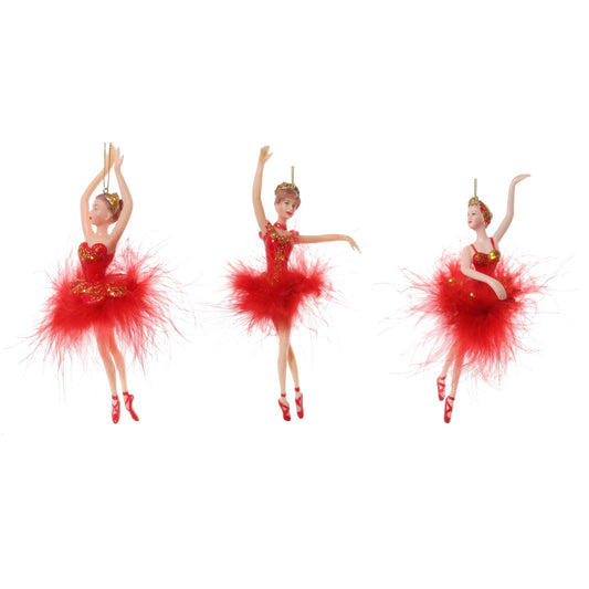 Christmas Ornament Ballerina Red Feather Tutu - Tendu