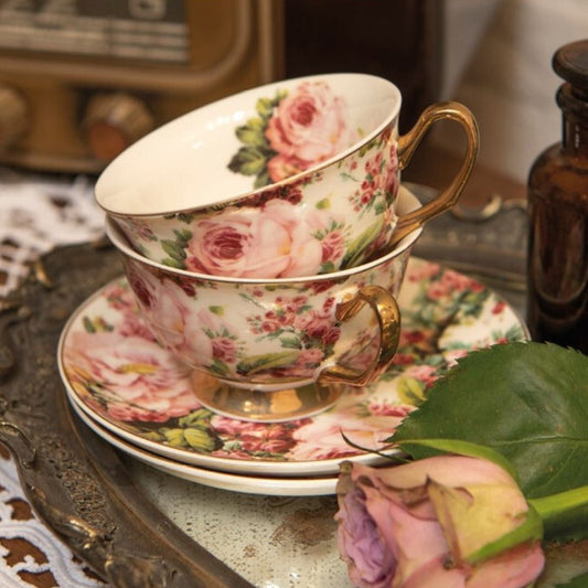 Vintage Pink Porcelain Flowers Cup And Saucer