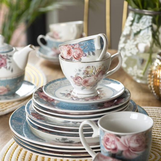 Classic White Blue Porcelain Flowers Cup and Saucer