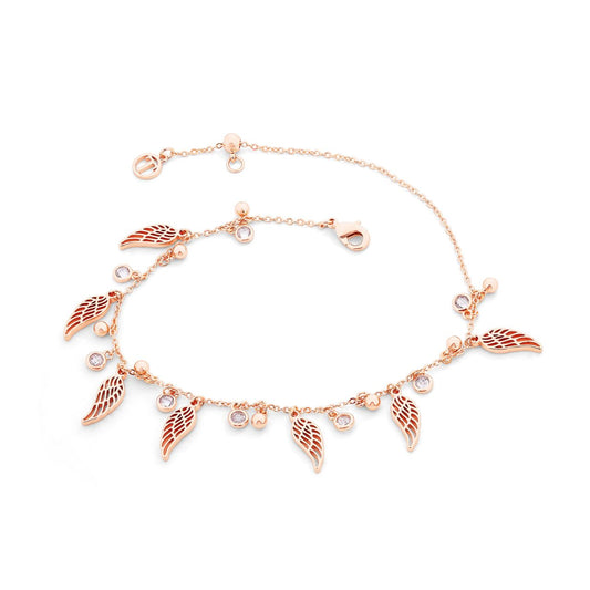 Tipperary Angel Wings Bracelet Ball & Crystal Chain Rose Gold