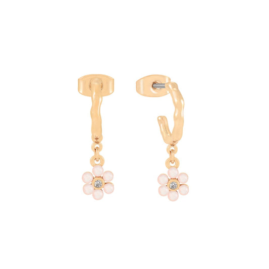 Tipperary Daisy Pink Pearl Hoop Drop Gold Earrings