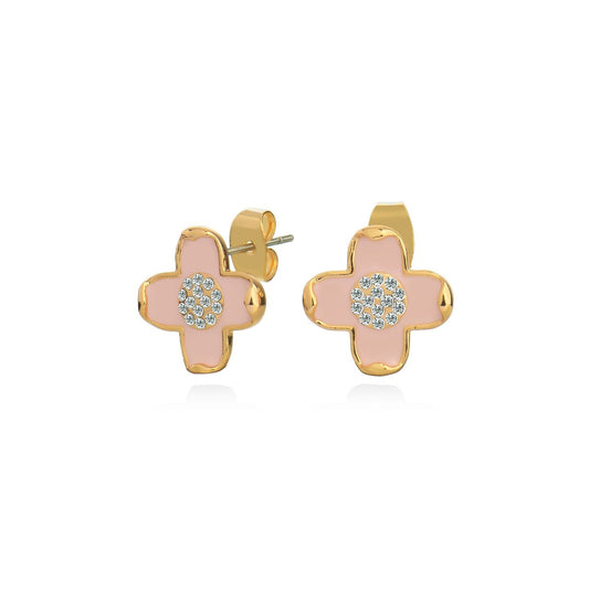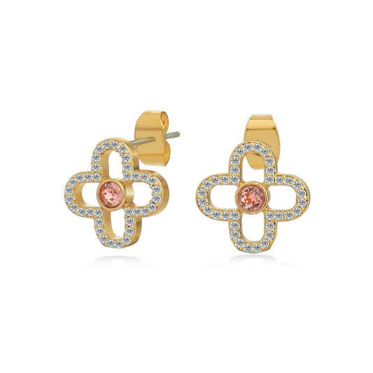 Tipperary Le Fleur Collection Pink Cz Stud Earrings Yellow Gold