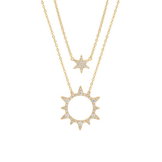 Tipperary Soleil Double Chain Sun & Star Necklace Gold