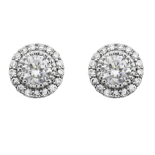 Tipperary Silver Stud Cz With Pave Surround Earrings